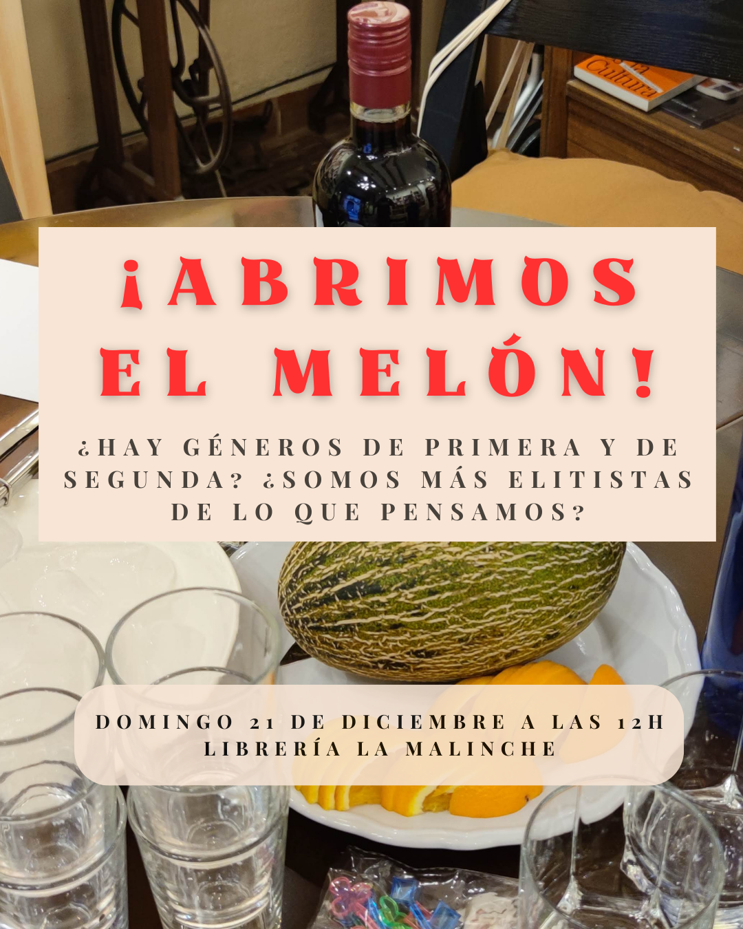 Librería La Malinche les invita a un diálogo tan refrescante como nuestra selección de vermut. ¿Existe realmente una jerarquía en el panteón literario? ¿O es el llamado «elitismo intelectual» una mera pose vestida de crítica? Abordaremos sin tapujos la eterna dicotomía entre la Alta Cultura y los géneros populares (ciencia ficción, novela negra, fantasy). Analizaremos cómo se construyen estos muros, quién reparte los galardones de «literatura seria» y por qué un best-seller es a menudo condenado a la sala de espera. Una ocasión para desmontar prejuicios y celebrar la buena escritura, provenga de donde provenga.