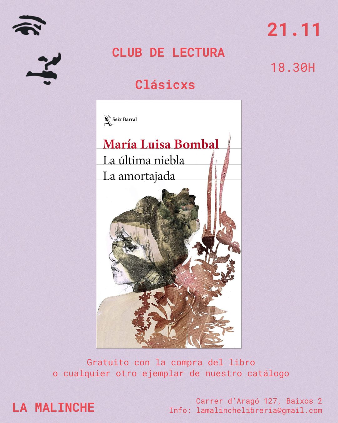 Con este club de lectura queremos hacer una arqueología literaria y restituir la memoria de algunas obras y autorxs relegadxs por la historia oficial. La idea es subvertir el canon, ponerlo en crisis y ampliar la idea de «clásicxs» de la literatura latinoamericana. Para la sesión de noviembre leeremos ‘La amortajada’ de María Luisa Bombal. 🌺