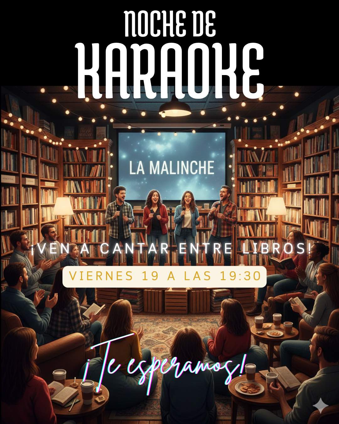 ¿Cansada de que tus lecturas solo te hagan llorar con el final, y no cantar a pleno pulmón? ¡Pues agarra ese marcapáginas, porque en La Malinche cambiamos el drama por el glamour! Este viernes, las estanterías se convierten en nuestro escenario, y tú, rodeada de grandes obras, serás la protagonista de la noche. Da igual si tu voz es más de balada épica o ronca como un punk kalimotxero: ven a desafinar, a darlo TODO y a demostrar que incluso la literatura más sesuda se disfruta mejor con un poquito de autotune natural. ¡Si los libros no te juzgan, tu público tampoco!
